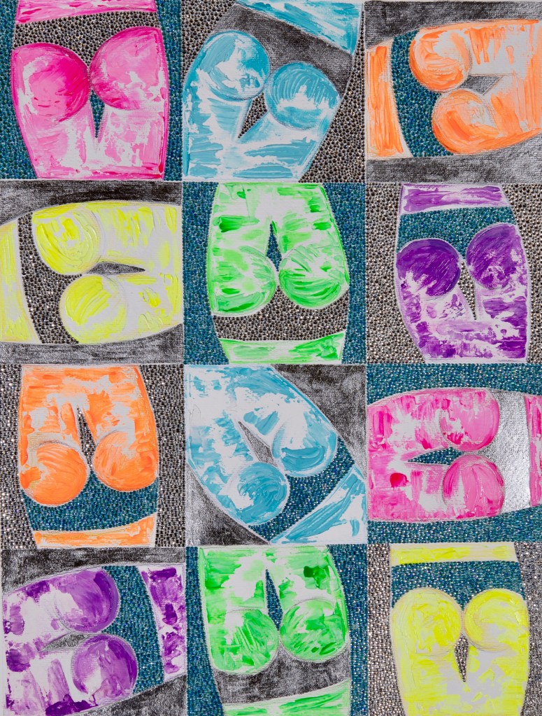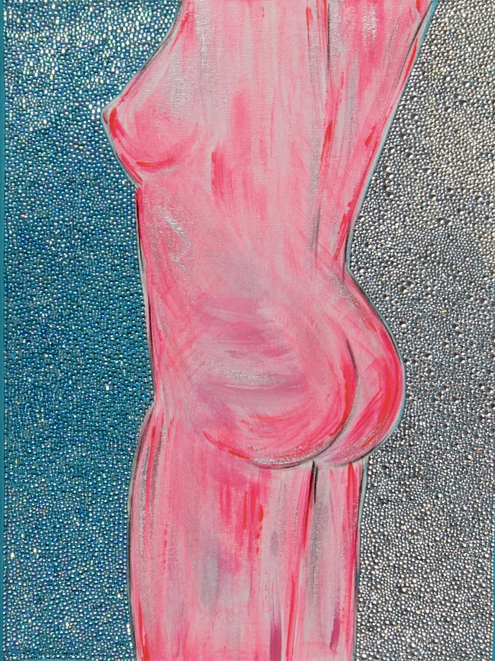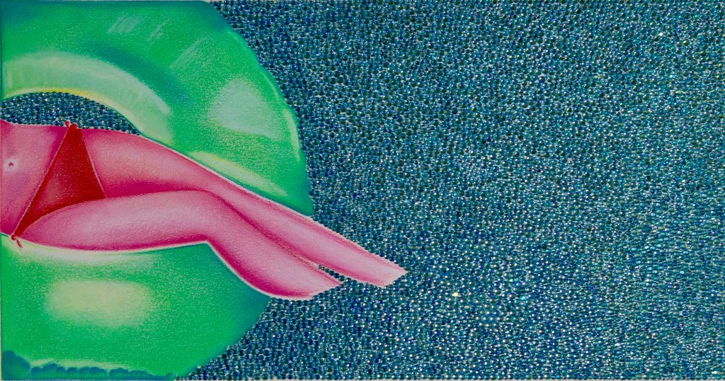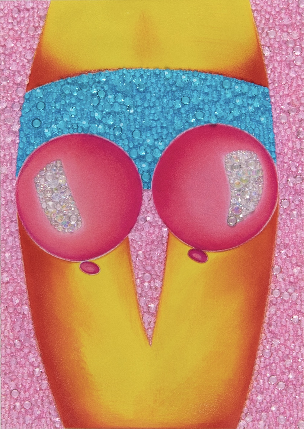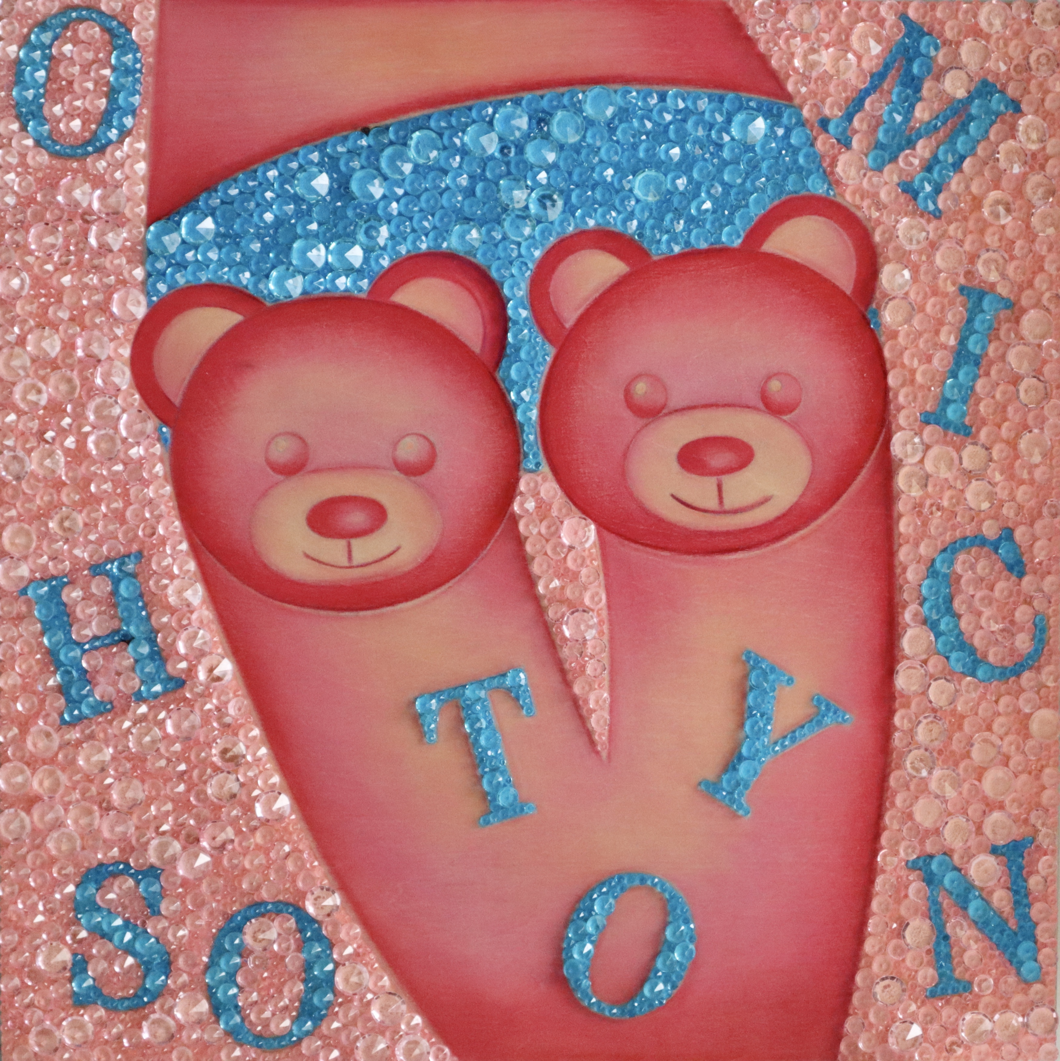ACRYLICS, HAND-APPLIED CRYSTALS ON CANVAS