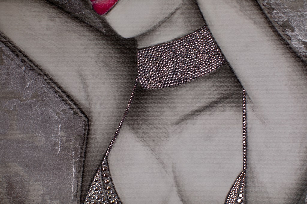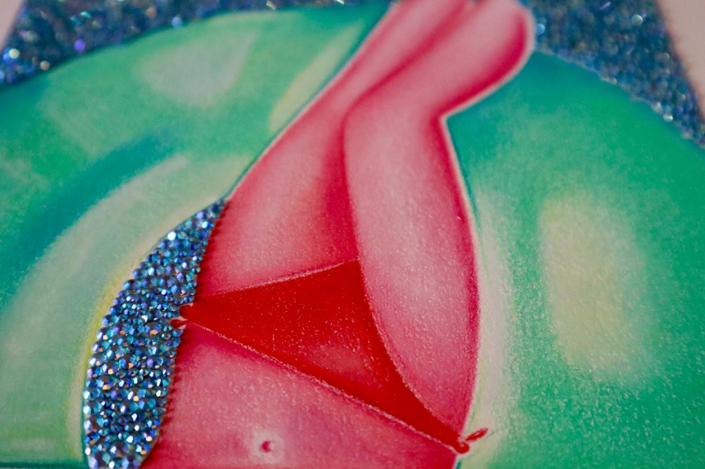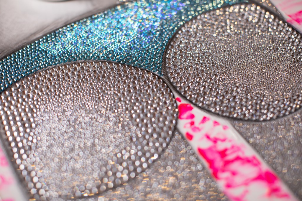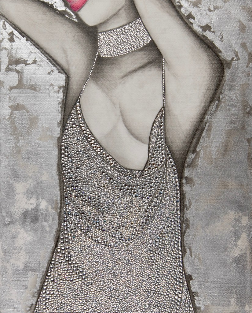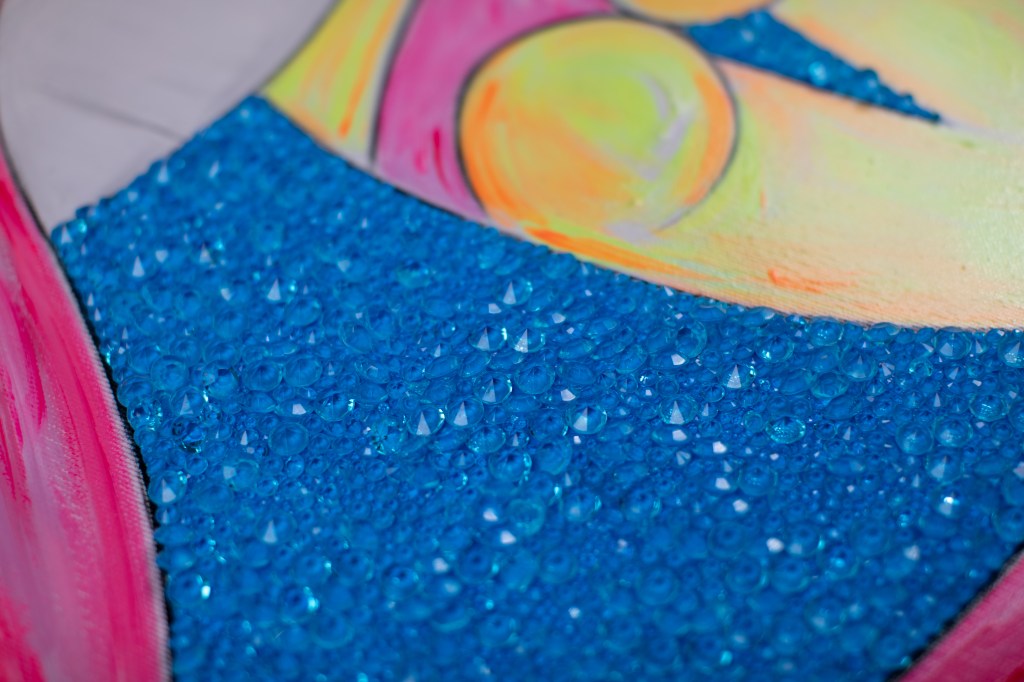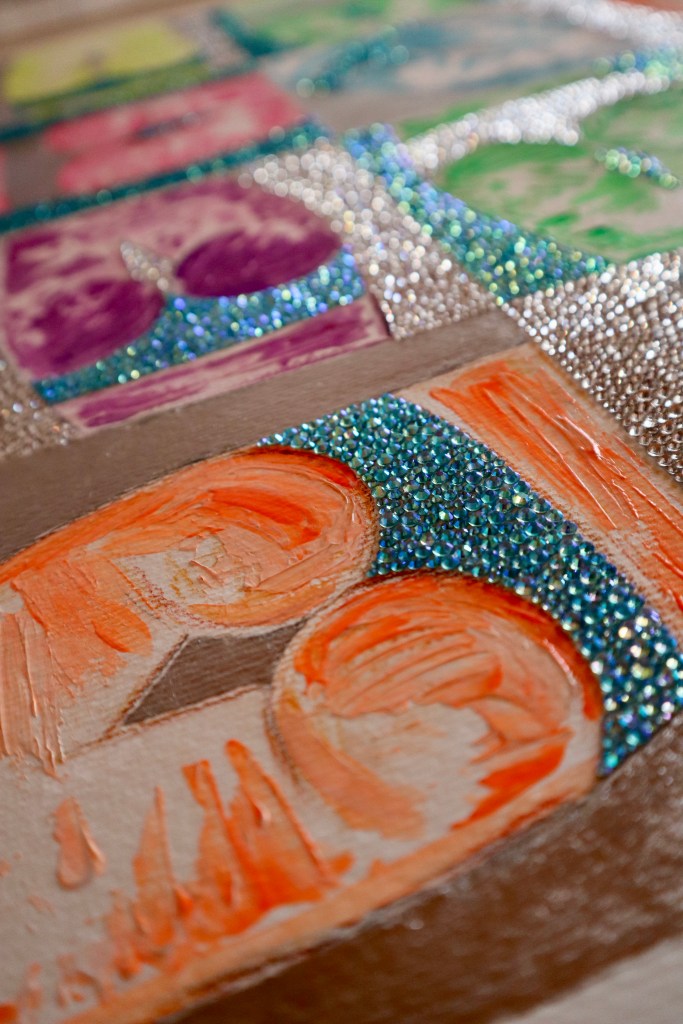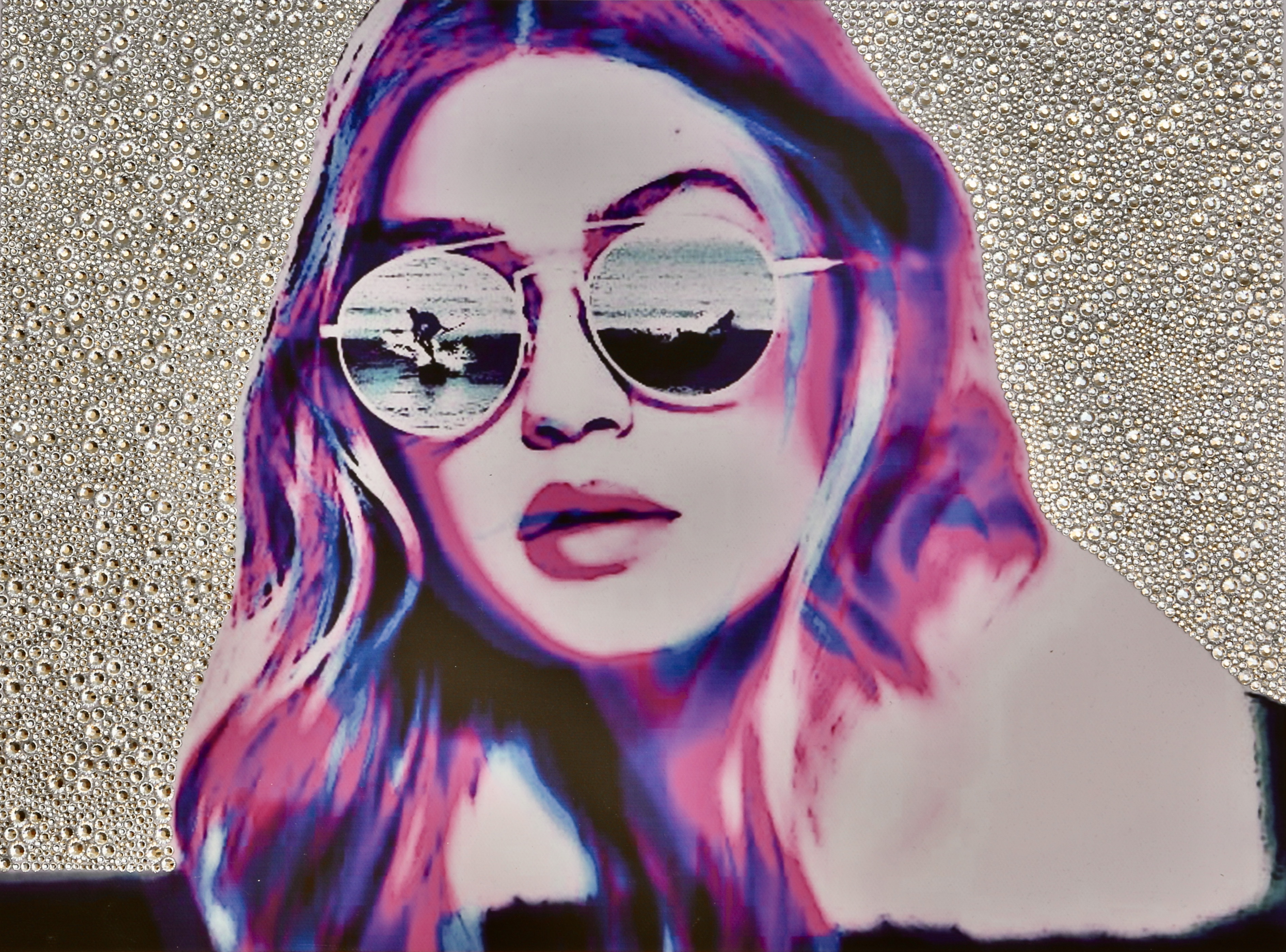 DIGITAL EDITING, HAND-APPLIED CRYSTALS ON PRINTED CANVAS