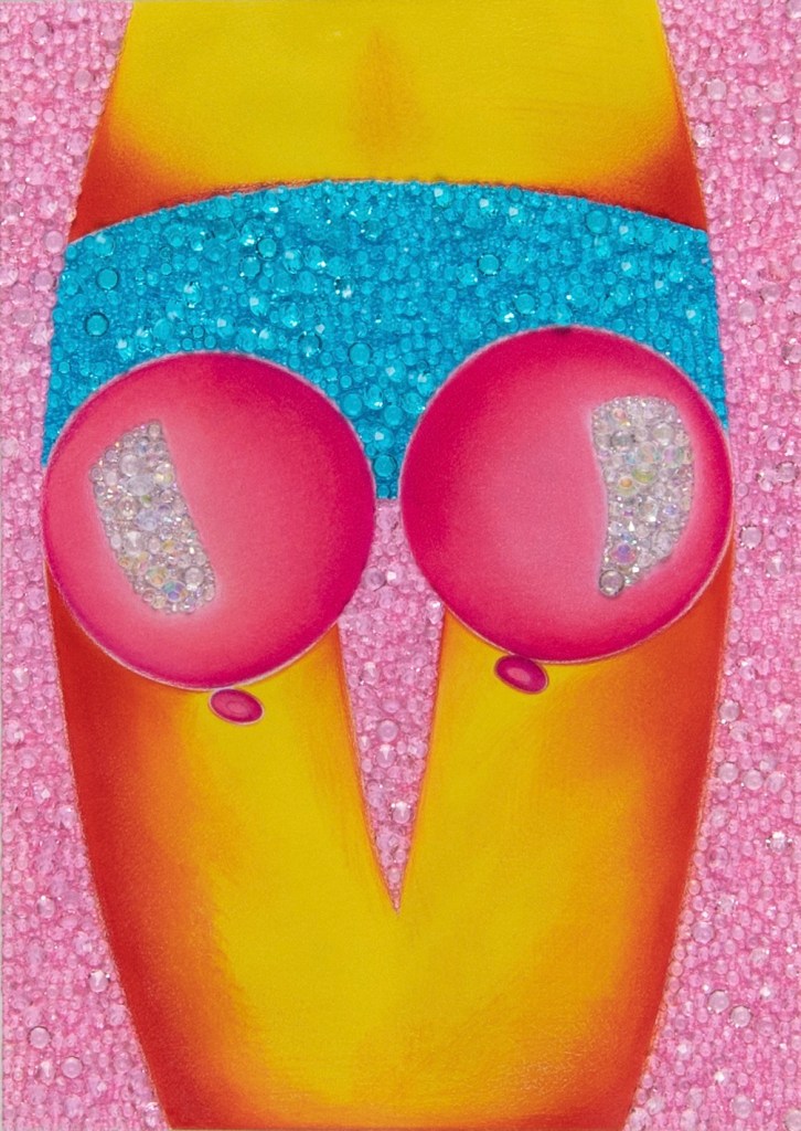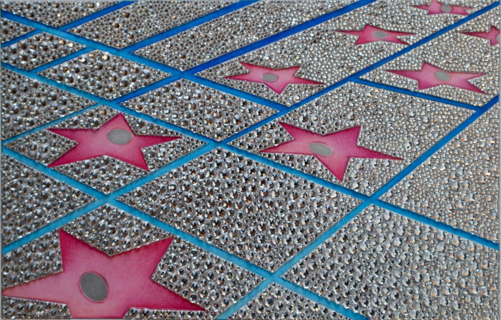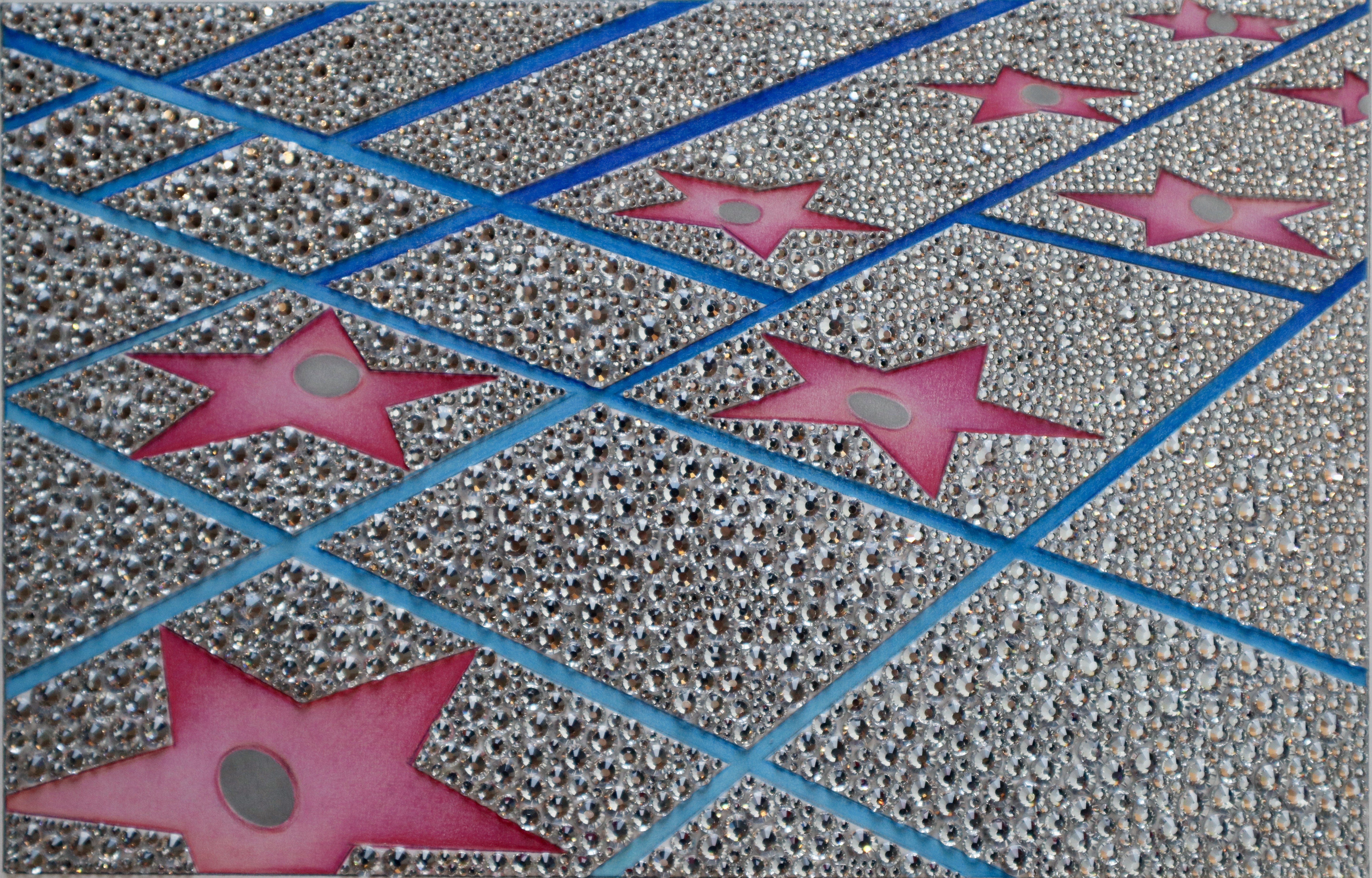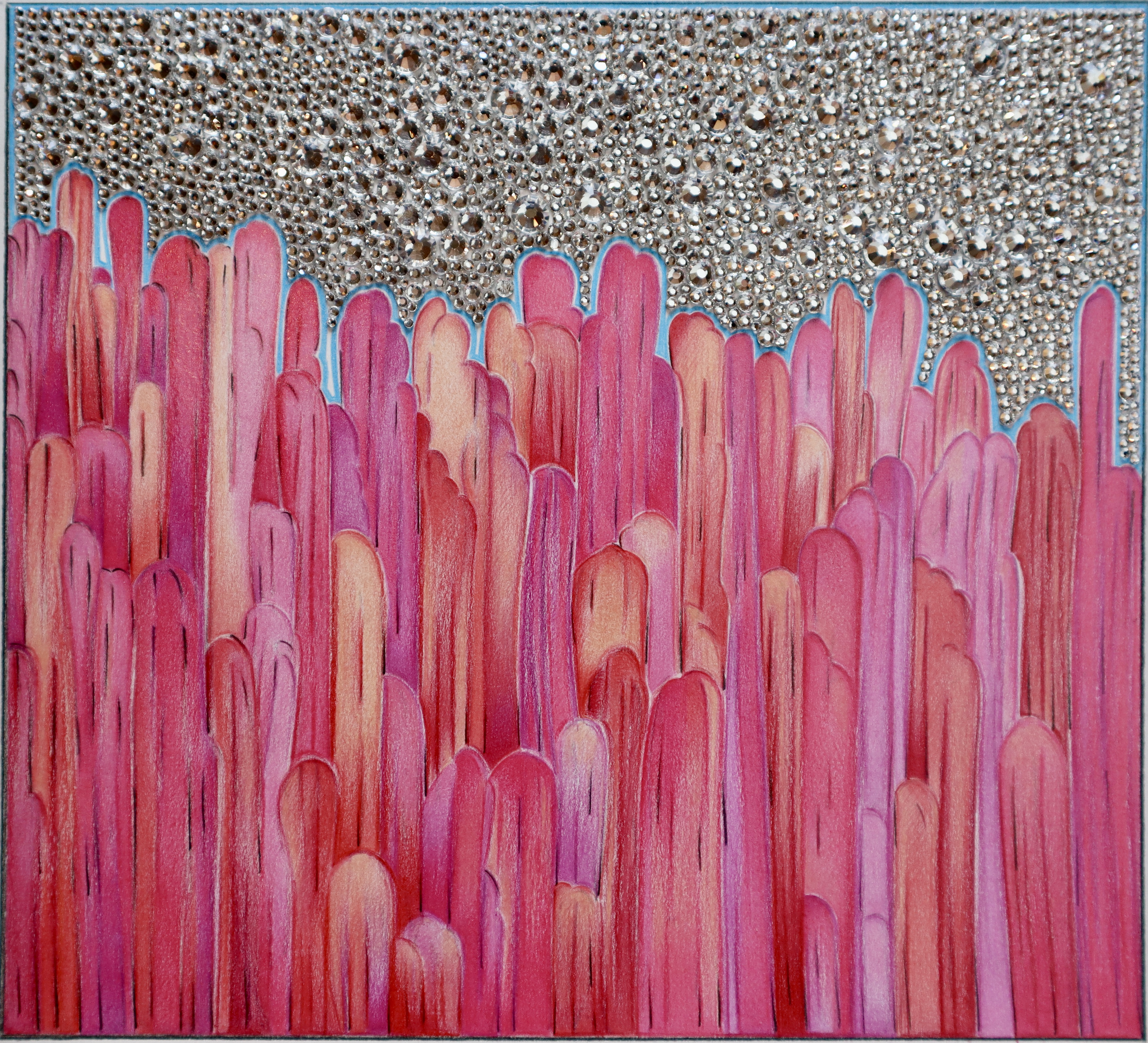 COLORED PENCILS, HAND-APPLIED CRYSTALS ON PAPER